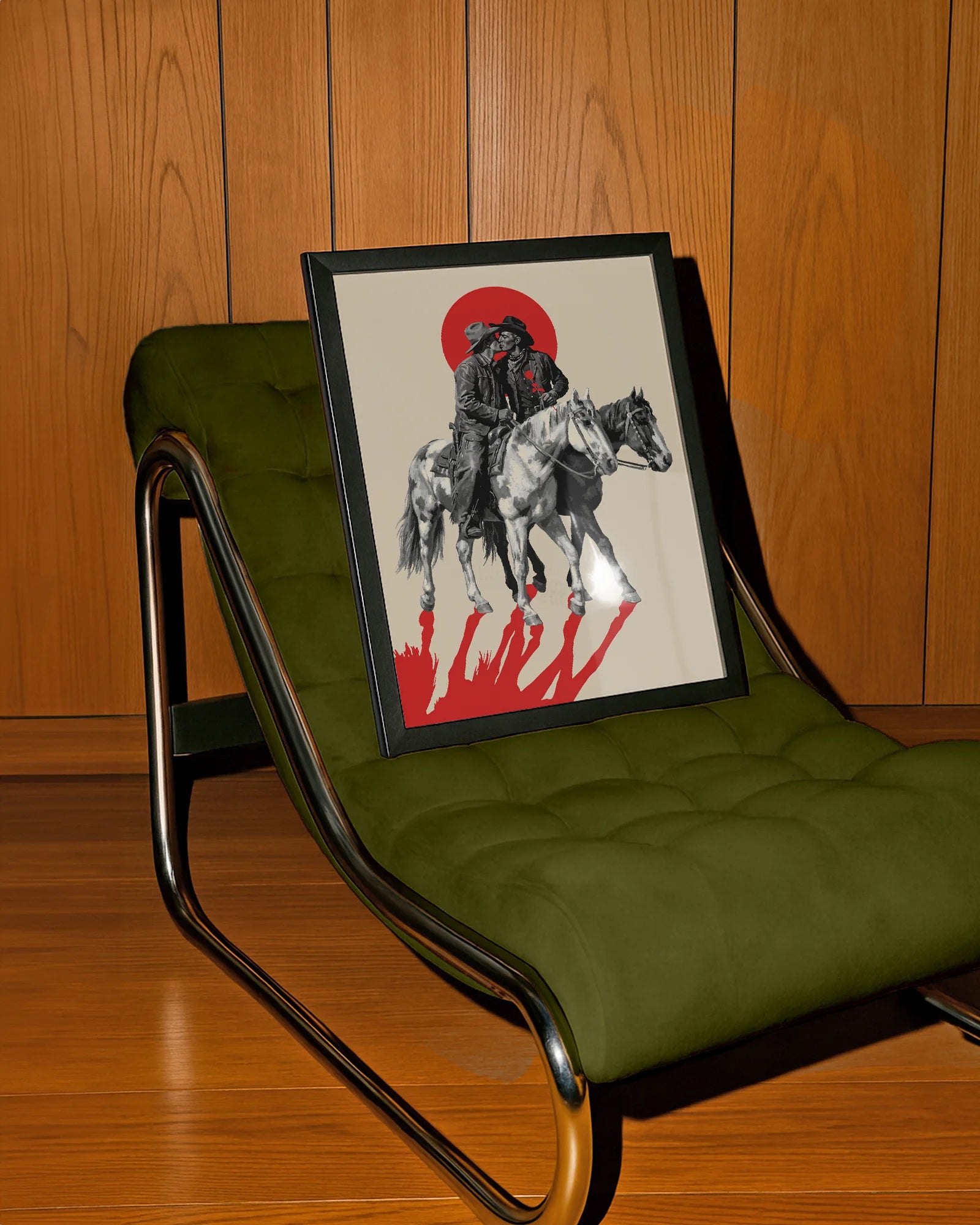En het kyss under en glödande sol i vilda västern, denna vackert illustrerade poster sätter både stämning och värme i vilket rum som helst.