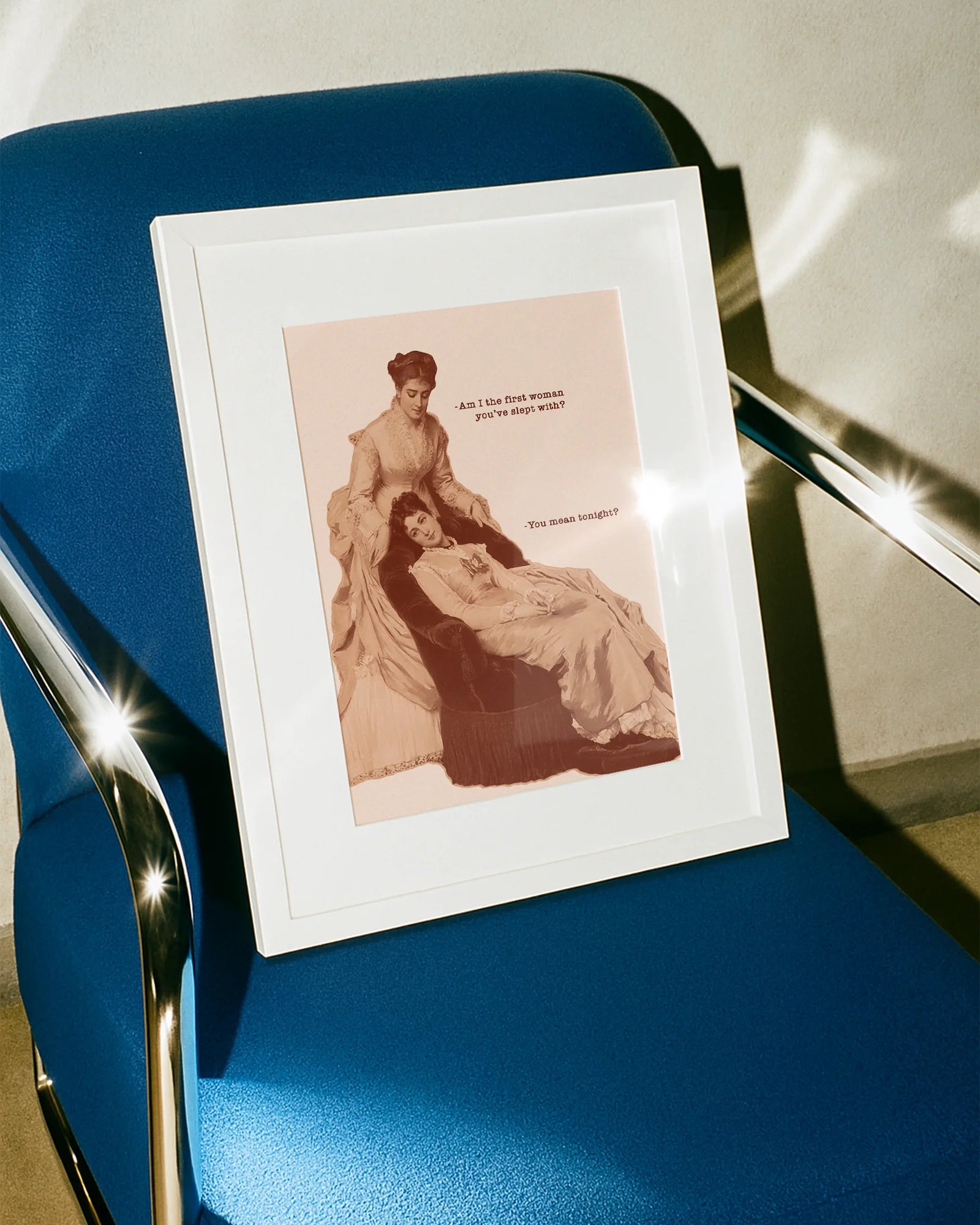 Postern föreställer två saffiska kvinnor i den viktorianska eran i en konversation: "Am I the first woman you've slept with?' 'You mean tonight?'.